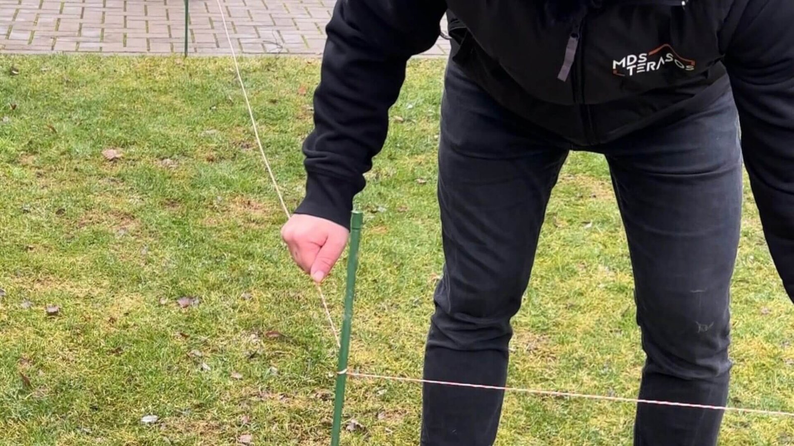 Kai jau pasirinkote vietą lauko terasai, atlikite paprastą žymėjimo procesą. Įkalę kampinius kuoliukus būsimos terasos kampuose ir sujungę juos virve, aiškiai matysite būsimos terasos kontūrus. Svarbu užtikrinti, kad virvė būtų įtempta, kampai statūs, o aukščiai – vienodi. Tai padės vizualiai įvertinti, ar pasirinkta terasos forma atitinka jūsų lūkesčius. Ir lengviau pamatyti, ar pasirinkta forma dera prie aplinkos ir ar neatsiranda trukdžių, pavyzdžiui, medžių šaknų ar kitų kraštovaizdžio elementų.