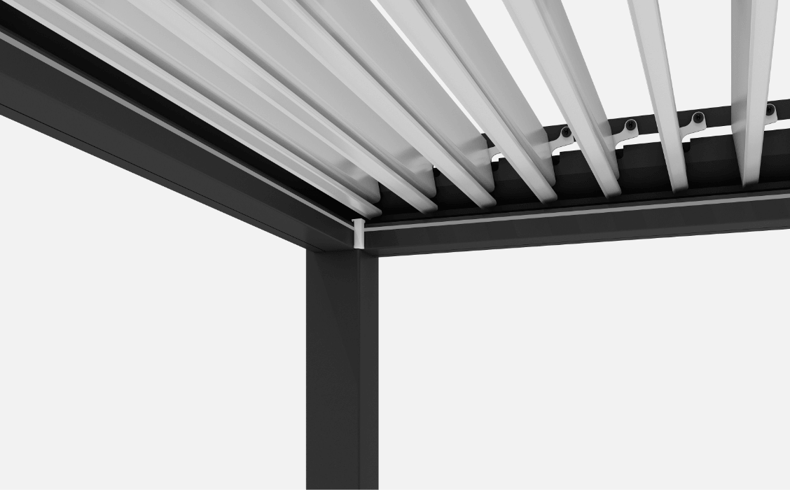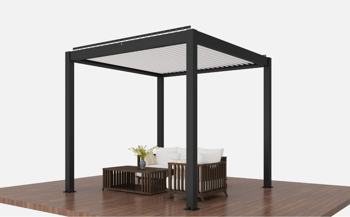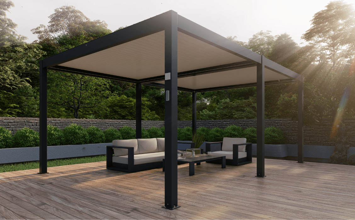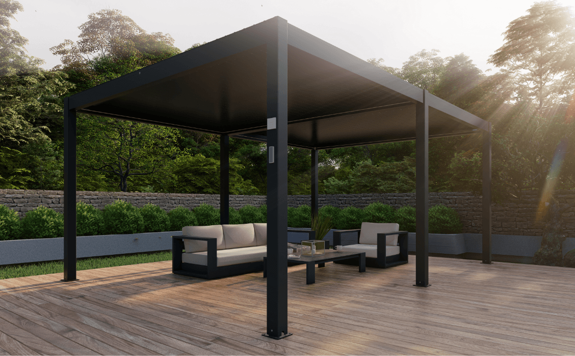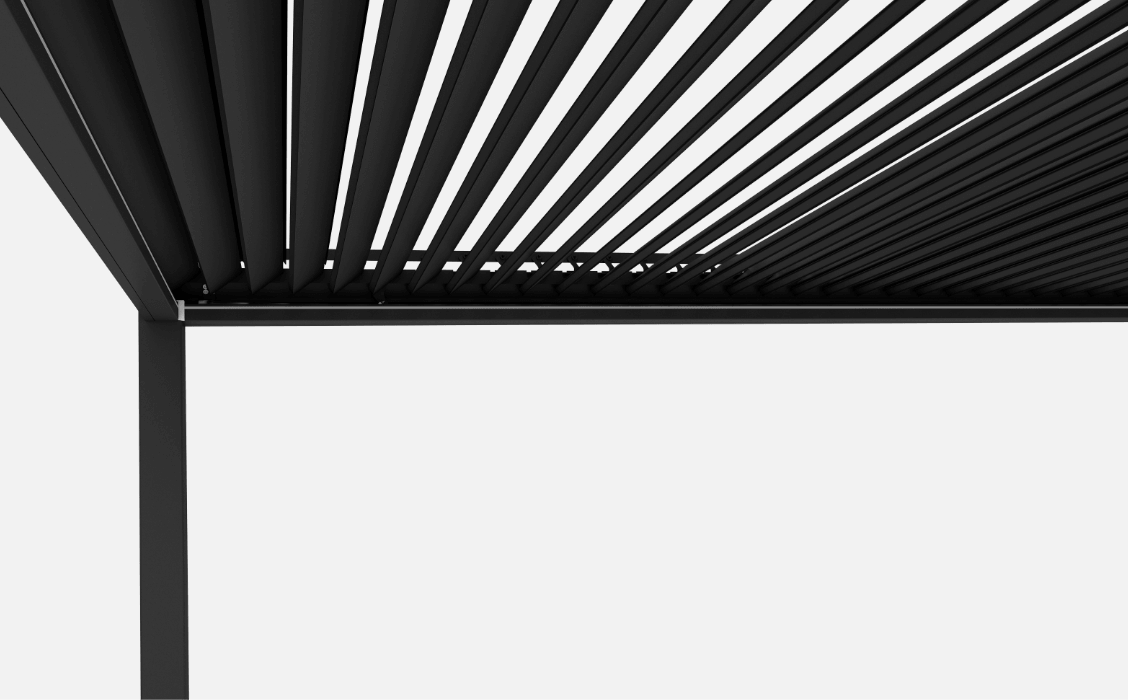Nuotoliniu būdu valdomas pergolos stogas suteikia galimybę susikurti maksimaliai komfortiškas sąlygas pavėsinėje. Pravėrus stogo lameles galima įsileisti norimą kiekį gryno oro, šviesos ir saulės, arba pilnai uždaryti stogą, norint išvengti kritulių ir kaitrių saulės spindulių.