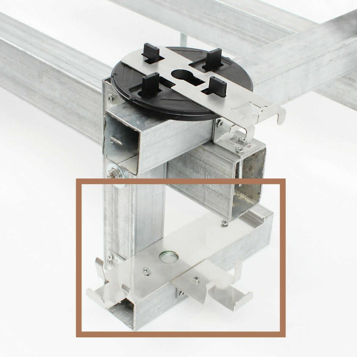 Apatinis plytelių laikiklis, skirtas vertikaliam šonų montavimui. Leidžia lengvai ir elegantiškai suformuoti paaukštintos terasos išorinio krašto erdvę. Tinka šoninės plytelės atramai po pjedestalu.