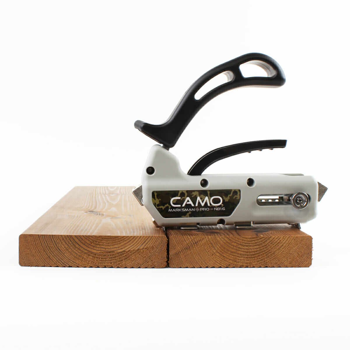 „CAMO Marksman PRO-NB 1.6“ įrankis skirtas profesionaliam terasos lentų montavimui. Ši patentuota įranga CAMO medsraigčius nukreipia specialiu kampu į terasinių lentų kraštus, formuodama 2 mm tarpą tarp lentų. Įrankiai suprojektuoti tik darbui su CAMO medsraigčiais.