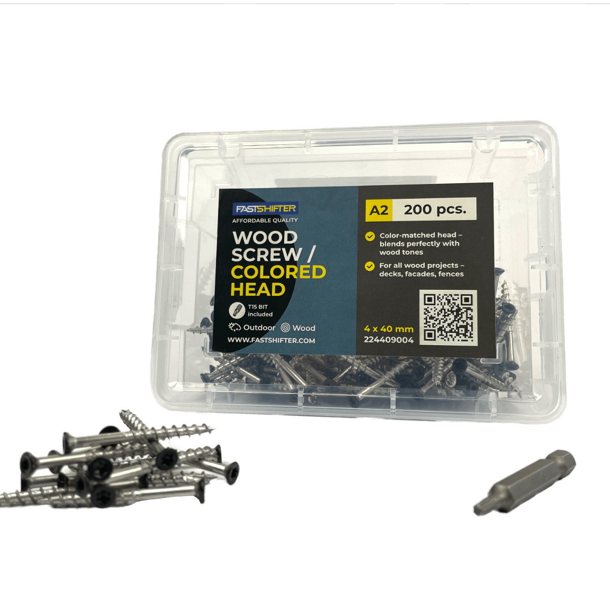 Pakuotėje: 200 vnt. medsraigčių +T15 bitukas