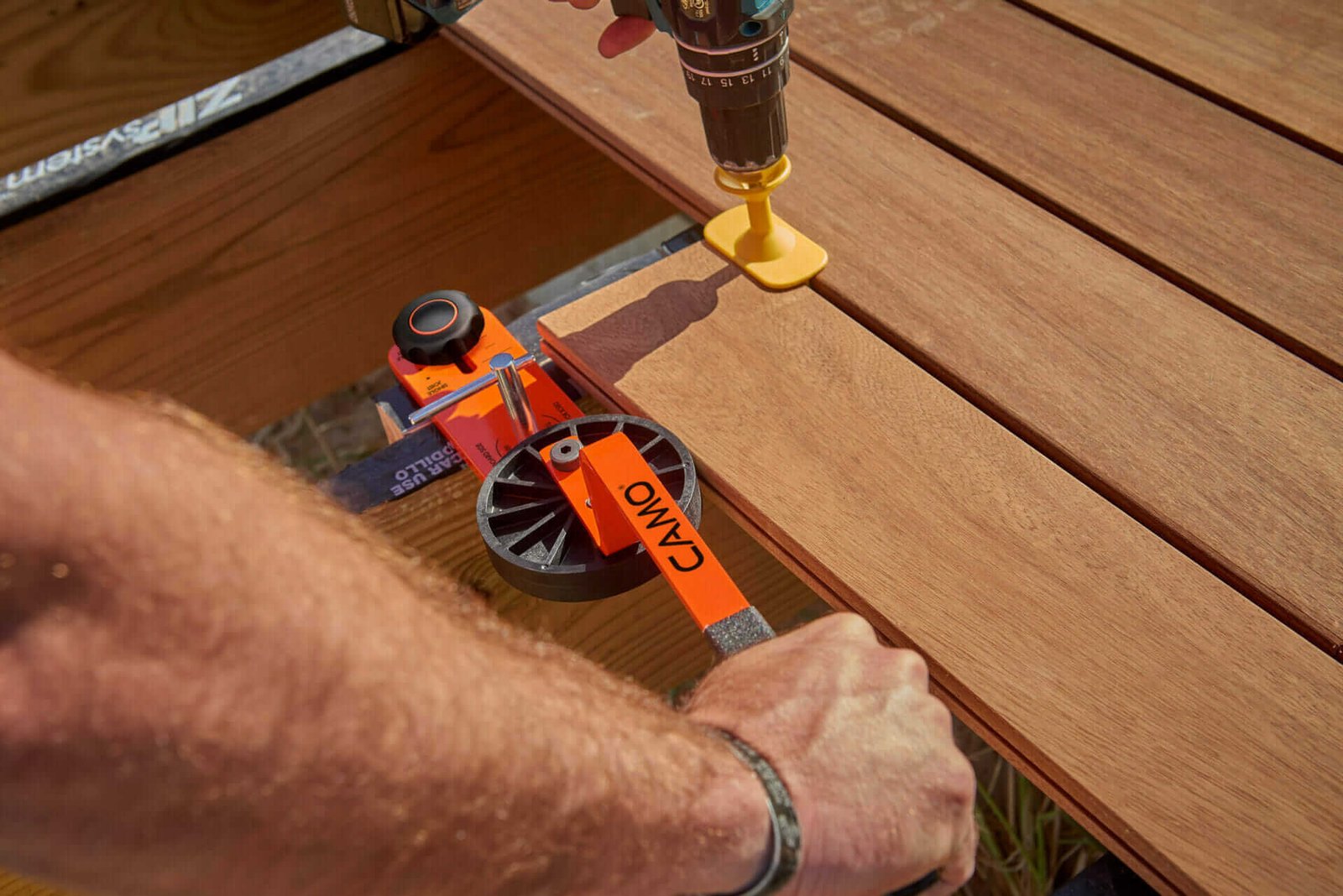 Paspartina terasinių lentų montavimo darbus kelis kartus. Vienu užlenkimu CAMO LEVER gali ištiesinti iškreiptas lentas ir užfiksuoti jas vienoje eilėje, išlaikant nuoseklų atstumą.