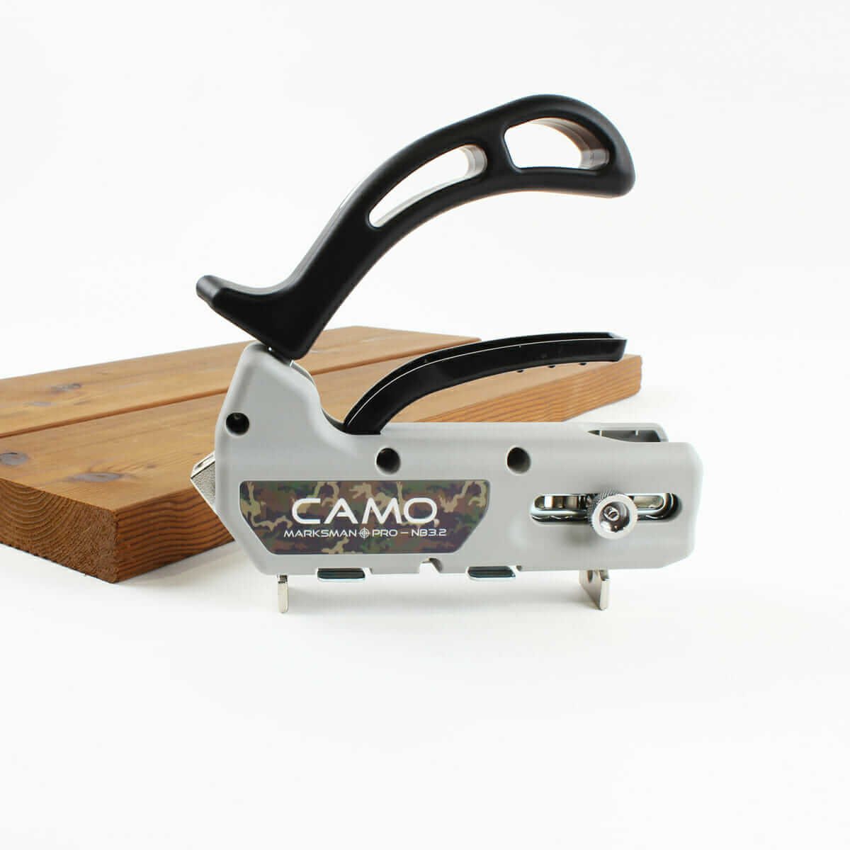 Įrankis CAMO PRO-NB 5 Marksman skirtas profesionaliam terasos lentų montavimui. Ši patentuota įranga CAMO medsraigčius nukreipia specialiu kampu į terasinių lentų kraštus, formuodama 5 mm tarpą tarp lentų. Įrankiai suprojektuoti tik darbui su CAMO medsraigčiais.