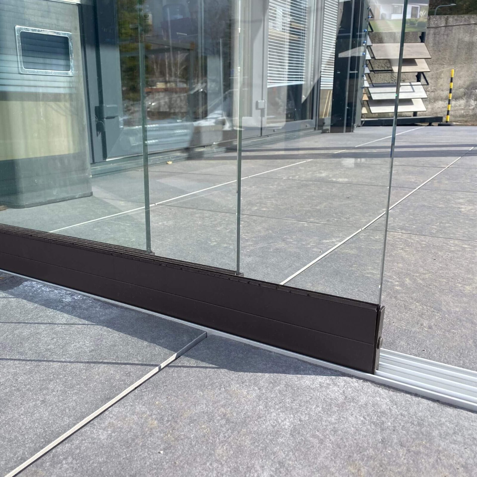 Ruda berėmė stumdoma stiklinimo sistema terasai. Tvirta ir ilgaamžė aliuminio konstrukcija su bėgeliais. Greitas, patogus ir lengvas aliuminės stoginės, medinės stoginės ar pergolos šonų stiklinimo būdas.