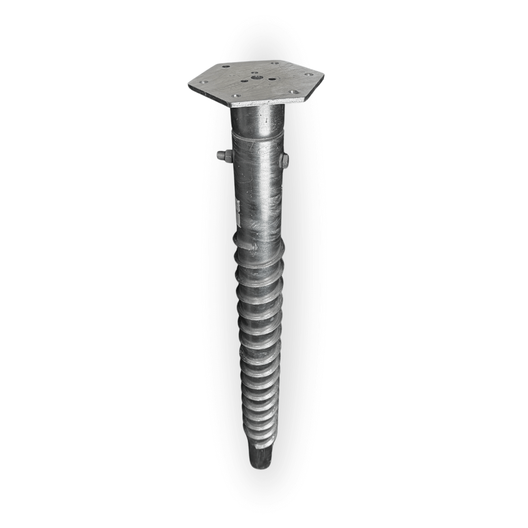 Sraigtinio pamato prailginimas su sriegiu jungiamoji serija „MDS N 76x1000x3,5mm HDG”. Sraigtinis polis skirtas terasų bei kitų lengvų statinių pamatams įrengti. Gali būti įsukamas rankiniu būdu arba naudojant specialią įrangą. Sraigtinius pamatus galima montuoti visais metų laikais. Sraigtinio pamato prailginimas tai itin greitas ir patogus būdas suformuoti stabilų, tvirtą pagrindą terasai.