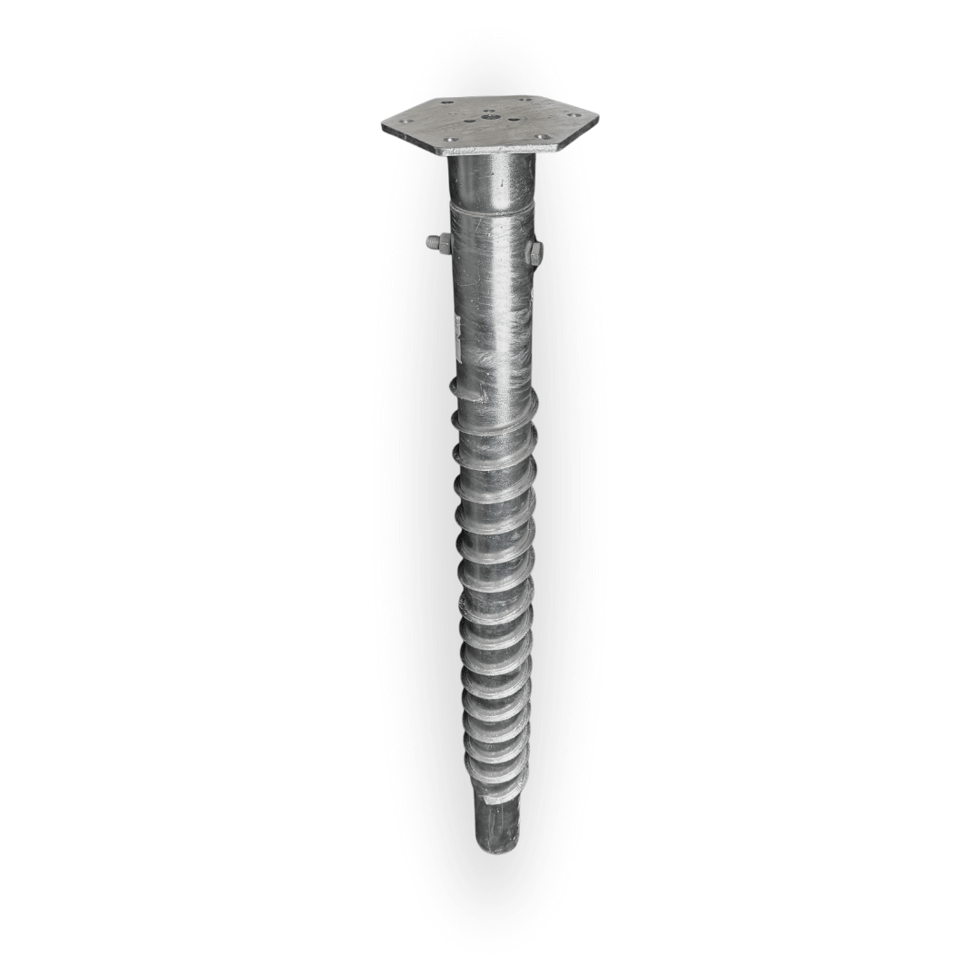 Sraigtinio polio prailginimas su sriegiu jungiamoji serija „MDS N 89x1000x3,5mm HDG”. Sraigtinis polis skirtas terasų bei kitų lengvų statinių pamatams įrengti. Gali būti įsukamas rankiniu būdu arba naudojant specialią įrangą. Sraigtinius pamatus galima montuoti visais metų laikais. Sraigtinio polio prailginimas tai itin greitas ir patogus būdas suformuoti stabilų, tvirtą pagrindą terasai.
