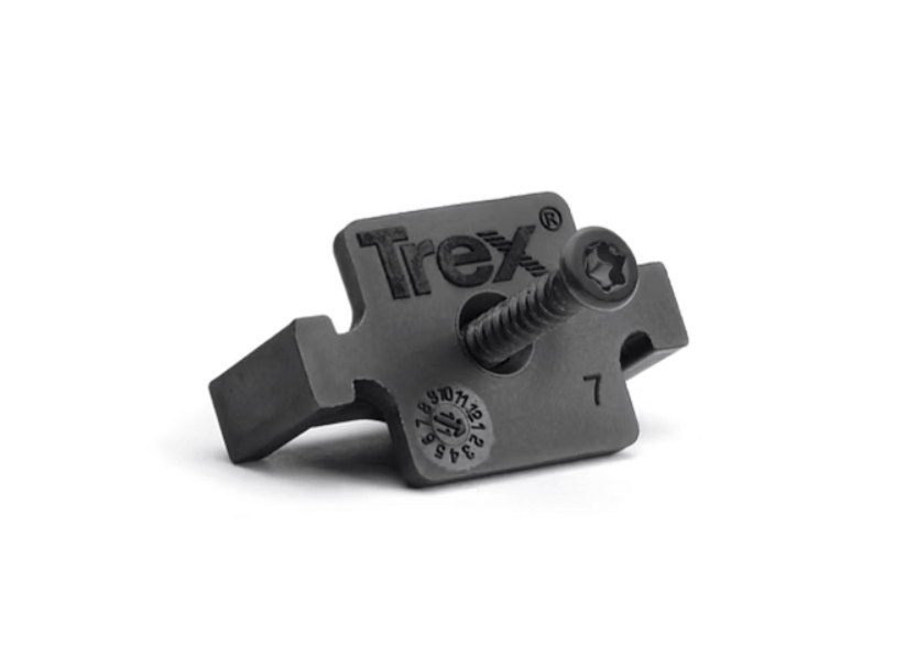 Trex terasinių lentų fiksatorius skirtas lentoms su išfrezuotais kraštais. Šie paslėpti fiksatoriai leidžia lentas pritvirtinti prie aliuminių lagių be matomų varžtų galvučių ir užtikrina vienodą tarpą tarp lentų per visą terasą.