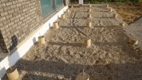 Tai technologija iš lieptų statybos. Į žemę sukalami metaliniai, geriausia cinkuoto metalo vamzdžiai. Galima pritaikyti nedidelių apkrovų statiniams, kaip 10-20m2 terasų grindims įrengti.